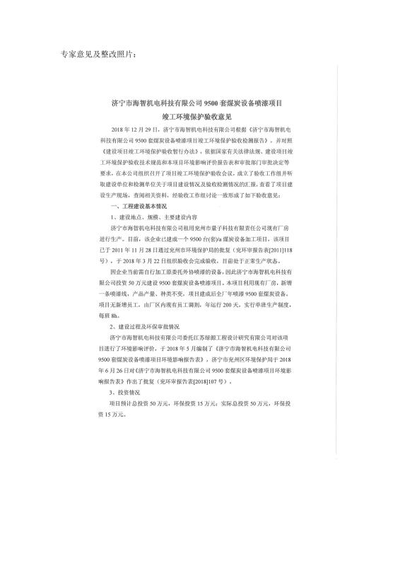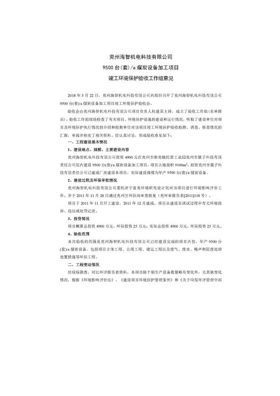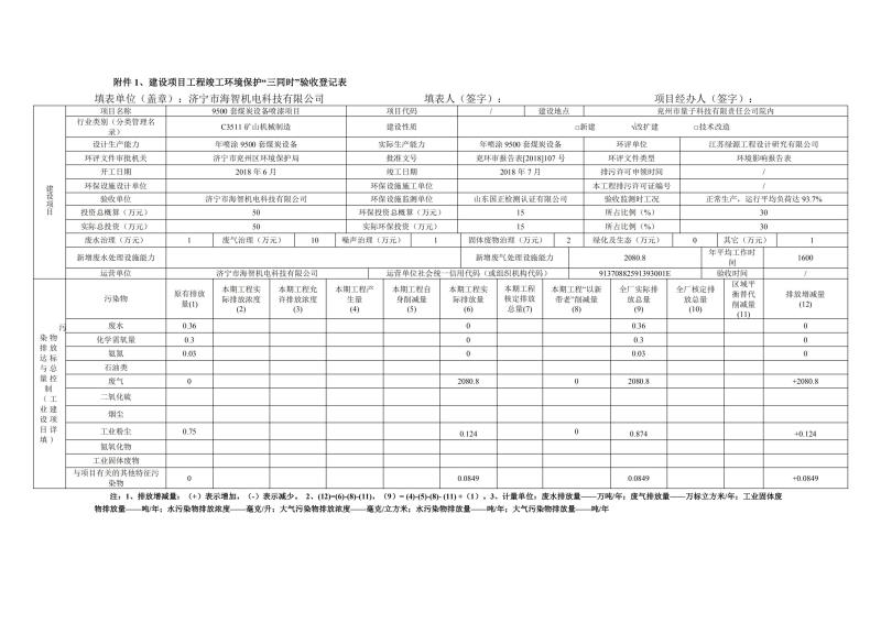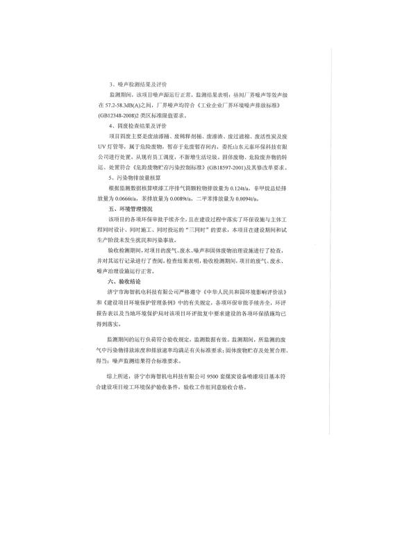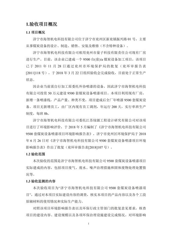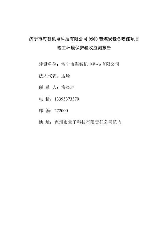 > 9500套煤炭設(shè)備噴漆項(xiàng)目竣工環(huán)境保護(hù)驗(yàn)收監(jiān)測報(bào)告
