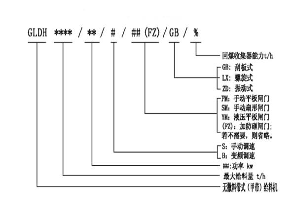 無撒料帶式(甲帶)給料機(jī)型號說明:
