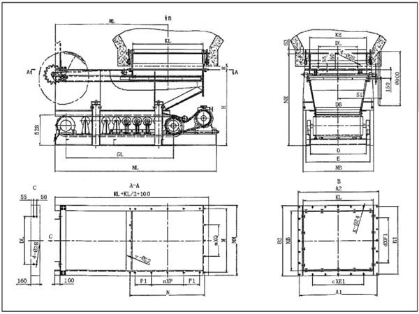 無撒料帶式(甲帶)給料機(jī)的外形及連接尺寸: